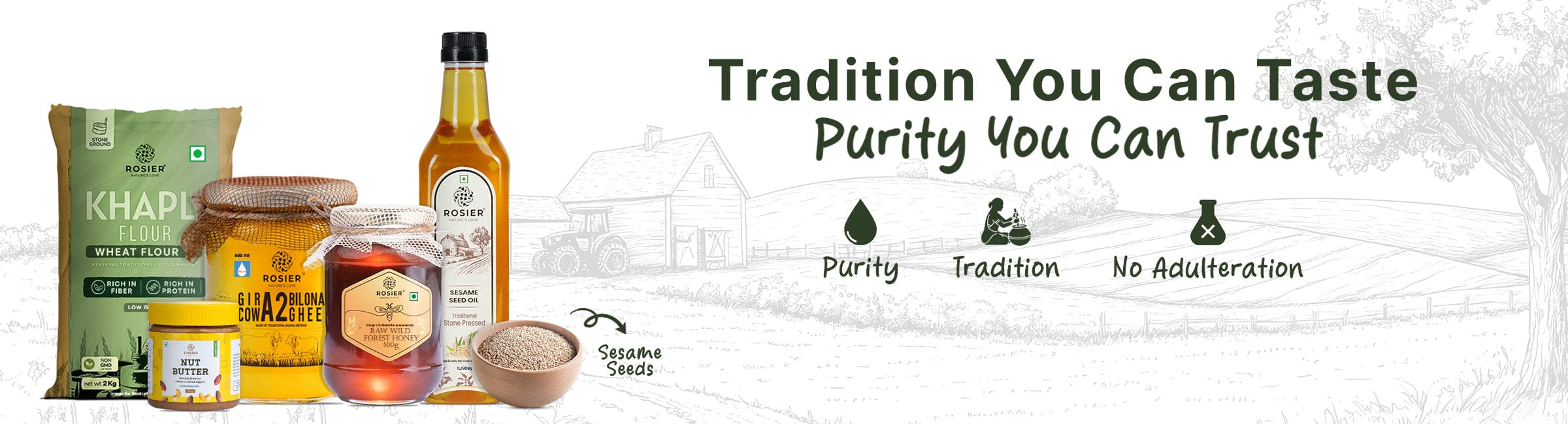 At Rosier Foods, we believe the wisdom of Old Bharat still holds the secret to wholesome living. We draw inspiration from age-old recipes, natural cooking methods, and ingredients trusted by generations. By blending these timeless traditions with modern quality standards, we bring you food that’s pure, authentic, and rich with the flavors of our heritage.